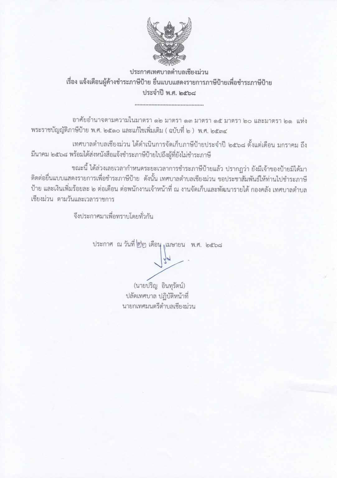 25 มกราคม 2024 ข่าวสารและประกาศเทศบาล -