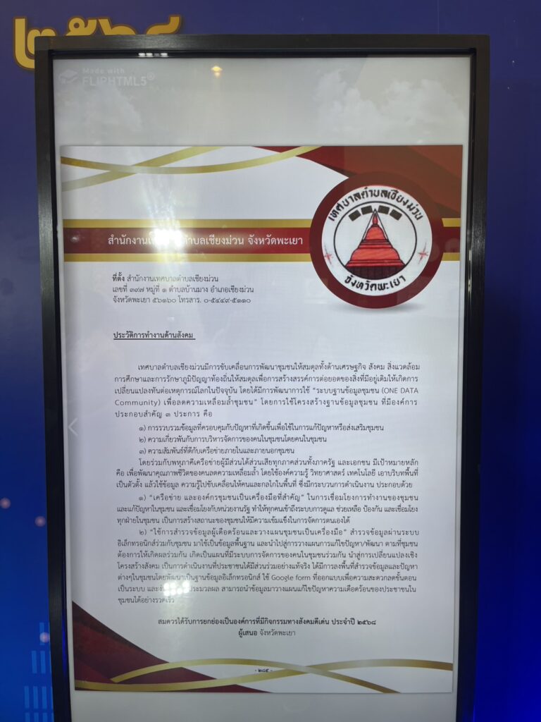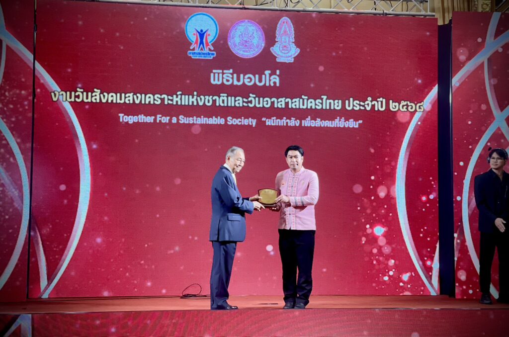 นายกเทศมนตรีตำบลเชียงม่วน เข้ารับโล่รางวัล “องค์กรที่มีกิจกรรมทางสังคมดีเด่น” จากพลอากาศเอกชลิต พุกผาสุข องคมนตรี ตอกย้ำความมุ่งมั่นเพื่อสุขภาวะที่ดีของชุมชน -21 ตุลาคม 2568 – นายสุเมธี คำลือ นายกเทศมนตรีตำบลเชียงม่วน ได้เข้ารับโล่รางวัลอันทรงเกียรติในฐานะ “องค์กรที่มีกิจกรรมทางสังคมดีเด่น” ประจำปี 2568 ในพิธีประกาศเกียรติคุณอาสาสมัครดีเด่นและองค์การที่มีกิจกรรมทางสังคมดีเด่น เนื่องในวันสังคมสงเคราะห์แห่งชาติและวันอาสาสมัครไทย ณ ห้องปรินซ์แกรนด์บอลรูม โรงแรมปรินซ์ พาเลซ กรุงเทพมหานคร การได้รับรางวัลครั้งนี้เป็นเครื่องยืนยันถึงความมุ่งมั่นและความทุ่มเทของเทศบาลตำบลเชียงม่วนในการขับเคลื่อนงานพัฒนาสังคมและยกระดับคุณภาพชีวิตของประชาชนในพื้นที่อย่างยั่งยืน