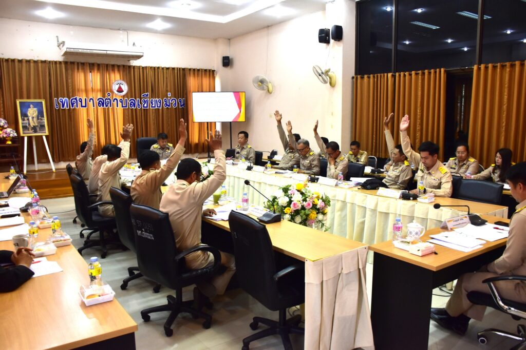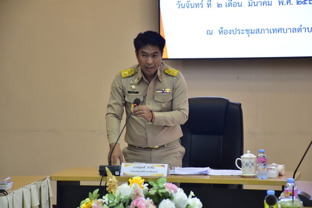 วันจันทร์ที่ 2 มีนาคม พ.ศ. 2569 เวลา 09.30 น. – ณ ห้องประชุมพระธาตุภูปอ เทศบาลตำบลเชียงม่วน นายสุเมธี คำลือ นายกเทศมนตรีตำบลเชียงม่วน พร้อมด้วยคณะผู้บริหาร ปลัดเทศบาล หัวหน้าส่วนราชการ และสมาชิกสภาเทศบาลตำบลเชียงม่วน เข้าร่วมการ ประชุมสภาเทศบาลตำบลเชียงม่วน สมัยที่ 1 ประจำปี พ.ศ. 2569 เพื่อพิจารณาข้อราชการสำคัญและติดตามความคืบหน้าโครงการพัฒนาในพื้นที่ ในการประชุมครั้งนี้ สภาเทศบาลฯ ได้ร่วมพิจารณาและมีมติเห็นชอบในระเบียบวาระที่สำคัญ เช่น:ด้านสาธารณสุขและสุขาภิบาล: เห็นชอบตราเทศบัญญัติ เรื่อง การควบคุมกิจการที่เป็นอันตรายต่อสุขภาพ พ.ศ. 2569 พิจารณาอนุมัติร่างเทศบัญญัติ เรื่อง การควบคุมการประกอบกิจการตู้น้ำหยอดเหรียญและน้ำดื่มบรรจุขวด พ.ศ. 2569 เพื่อยกระดับมาตรฐานความปลอดภัยและสุขอนามัยของพี่น้องประชาชนในพื้นที่ด้านโครงการพื้นฐานและโครงการอันเนื่องมาจากพระราชดำริ:พิจารณาเห็นชอบการขอใช้พื้นที่เพื่อดำเนินการ ก่อสร้างระบบส่งน้ำฝั่งซ้ายและอาคารประกอบ โครงการอ่างเก็บน้ำน้ำปี้อันเนื่องมาจากพระราชดำริ จังหวัดพะเยา เพื่อบริหารจัดการทรัพยากรน้ำให้เกิดประโยชน์สูงสุดต่อเกษตรกร พิจารณารับมอบทรัพย์สินสิ่งปลูกสร้าง โครงการขุดสระเก็บน้ำหน้าฝายห้วยจะฮ้าง บ้านท่าม่าน หมู่ที่ 5 ตำบลเชียงม่วน เพื่อใช้ในการดูแลรักษาและให้ประชาชนใช้ประโยชน์ร่วมกัน ด้านการบริหารจัดการที่ดินสาธารณประโยชน์: พิจารณาขอใช้ที่ดินสาธารณประโยชน์ และขอถอนสภาพที่ดินสาธารณสมบัติของแผ่นดินสำหรับพลเมืองใช้ร่วมกัน (น.ส.ล. เลขที่ 37794) หมู่ที่ 6 ตำบลเชียงม่วน เพื่อรองรับการพัฒนาสาธารณูปโภคในอนาคต การประชุมในวันนี้เป็นไปด้วยความเรียบร้อย โดยมุ่งเน้นผลประโยชน์สูงสุดของประชาชนชาวตำบลเชียงม่วน และการพัฒนาท้องถิ่นอย่างยั่งยืน