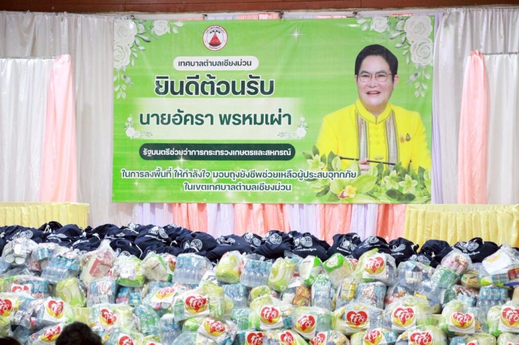 รมช.อัครา พรหมเผ่า ลงพื้นที่เชียงม่วน พะเยา ติดตามสถานการณ์น้ำ มอบถุงยังชีพ เยียวยาผู้ประสบภัยพายุ “วิภา”
