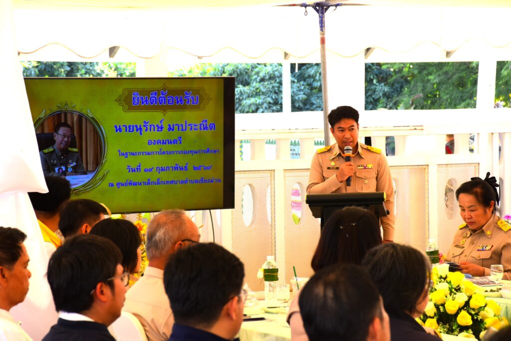 นายนุรักษ์ มาประณีต องคมนตรี ในฐานะกรรมการโครงการกองทุนการศึกษา ได้เดินทางมาปฏิบัติภารกิจลงพื้นที่ตรวจเยี่ยมโรงเรียนในโครงการกองทุนการศึกษาในพื้นที่อำเภอเชียงม่วน ณ ศูนย์พัฒนาเด็กเล็กเทศบาลตำบลเชียงม่วน อำเภอเชียงม่วน จังหวัดพะเยา
