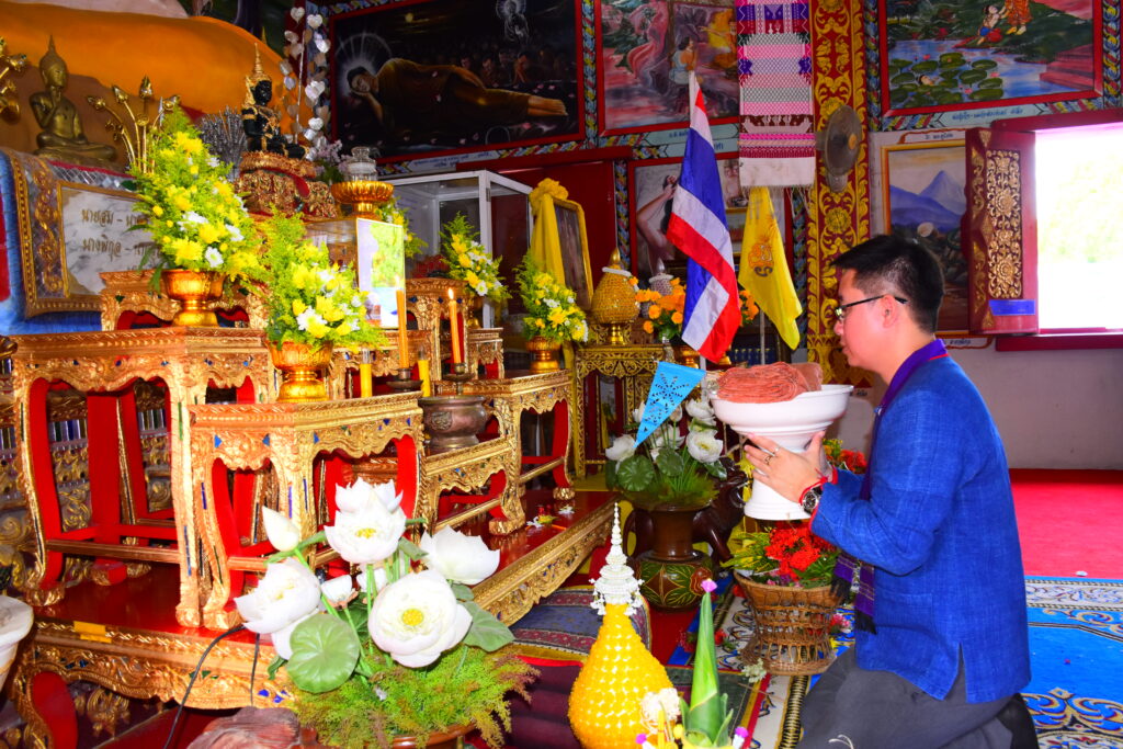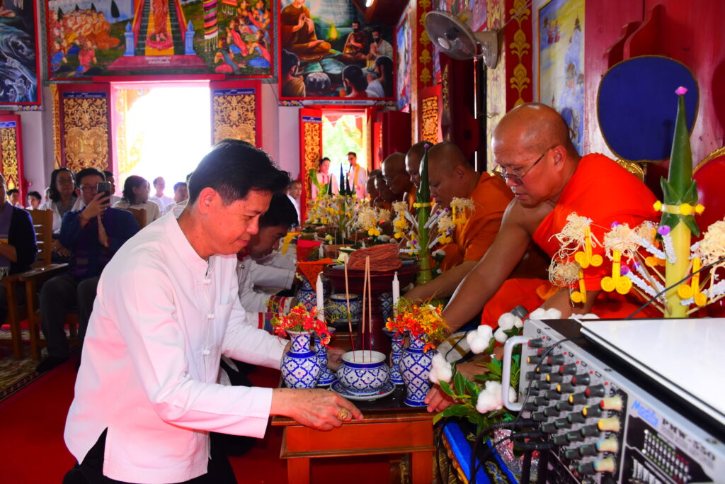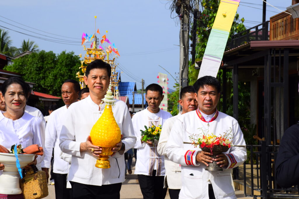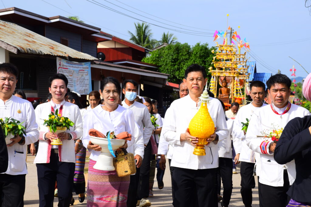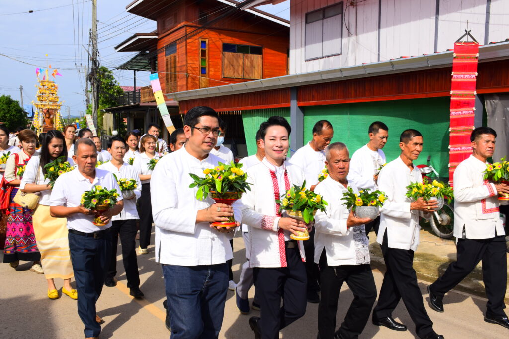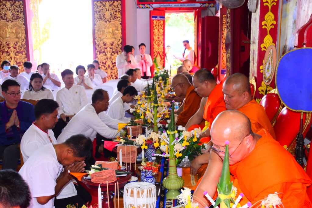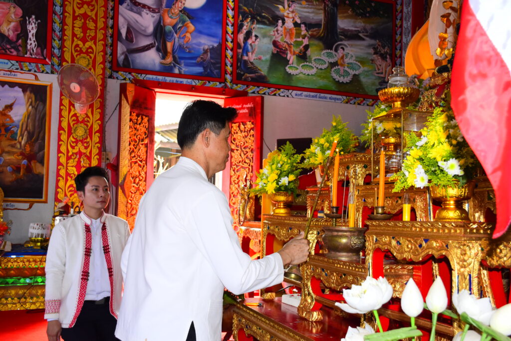 วันอังคารที่ 8 กรกฎาคม 2568 นายคเณศ คำนนท์ นายอำเภอเชียงม่วน พร้อมด้วย นายสุเมธี คำลือ นายกเทศมนตรีตำบลเชียงม่วน และคณะผู้บริหาร หัวหน้าส่วนราชการ พนักงานเทศบาลตำบลเชียงม่วน กำนัน ผู้ใหญ่บ้าน คณะเเม่บ้าน ผู้สูงอายุ คณะครูอาจารย์ นักเรียนในพื้นที่เทศบาลตำบลเชียงม่วน เข้าร่วมงานประเพณีถวายเทียนพรรษาและผ้าอาบน้ำฝน เนื่องในพิธีวันเข้าพรรษา ประจำปี 2568 ณ วัดปิน ต.เชียงม่วน อ.เชียงม่วน จ.พะเยา